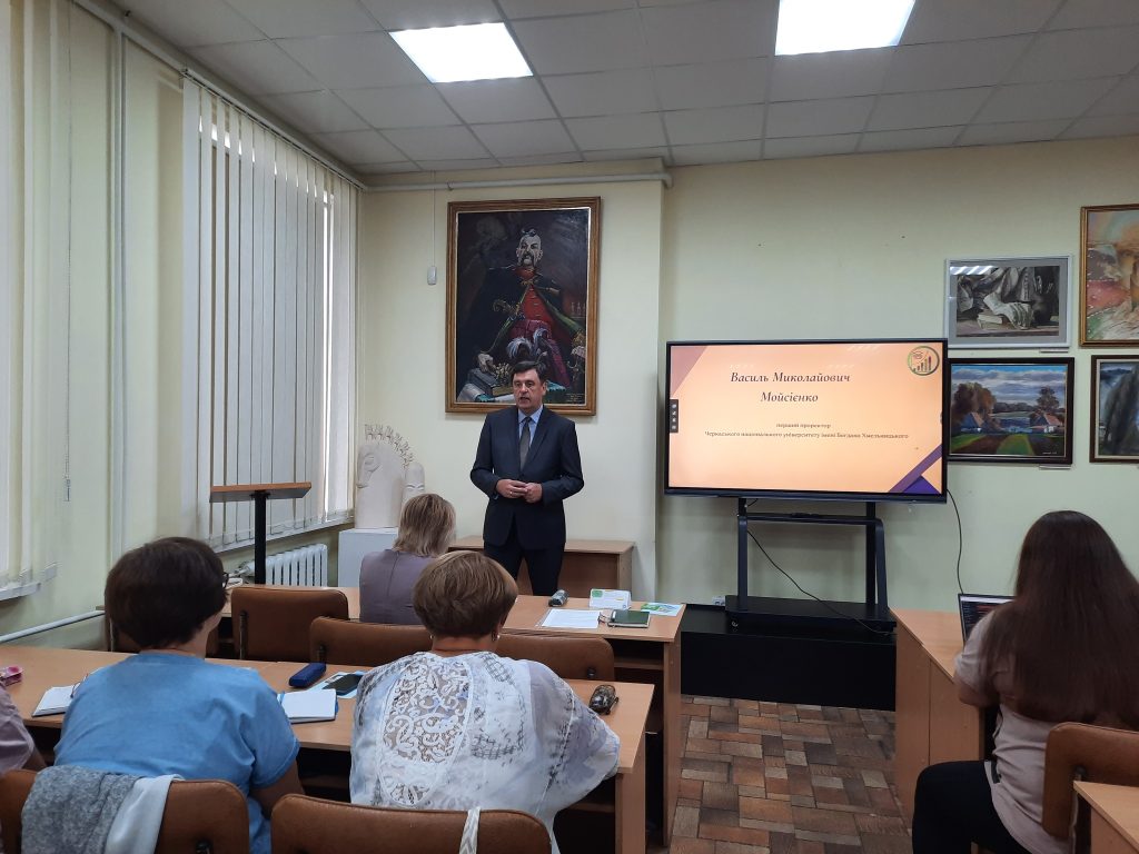 Учасників зібрання привітав перший проректор, кандидат історичних наук, професор Черкаського національного університету ім. Богдана Хмельницького Василь Мойсієнко та директор, кандидат біологічних наук, доцент навчально-наукового інституту природничих та аграрних наук Максим Гаврилюк.