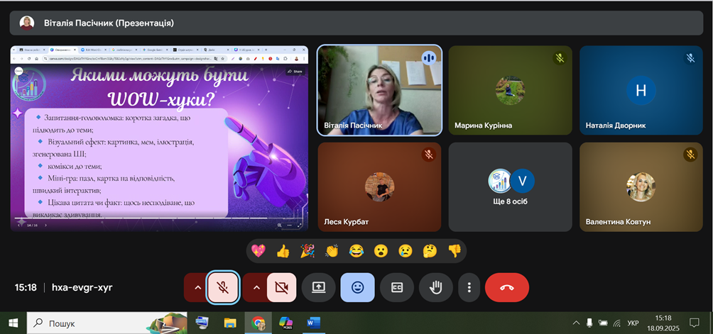 Консультант Центру Віталія Пасічник ознайомила присутніх із інструментами для реалізації «WOW-ефектів» на уроці та наголосила, що сучасні учні потребують не лише інформації, а й емоційного залучення до процесу навчання.