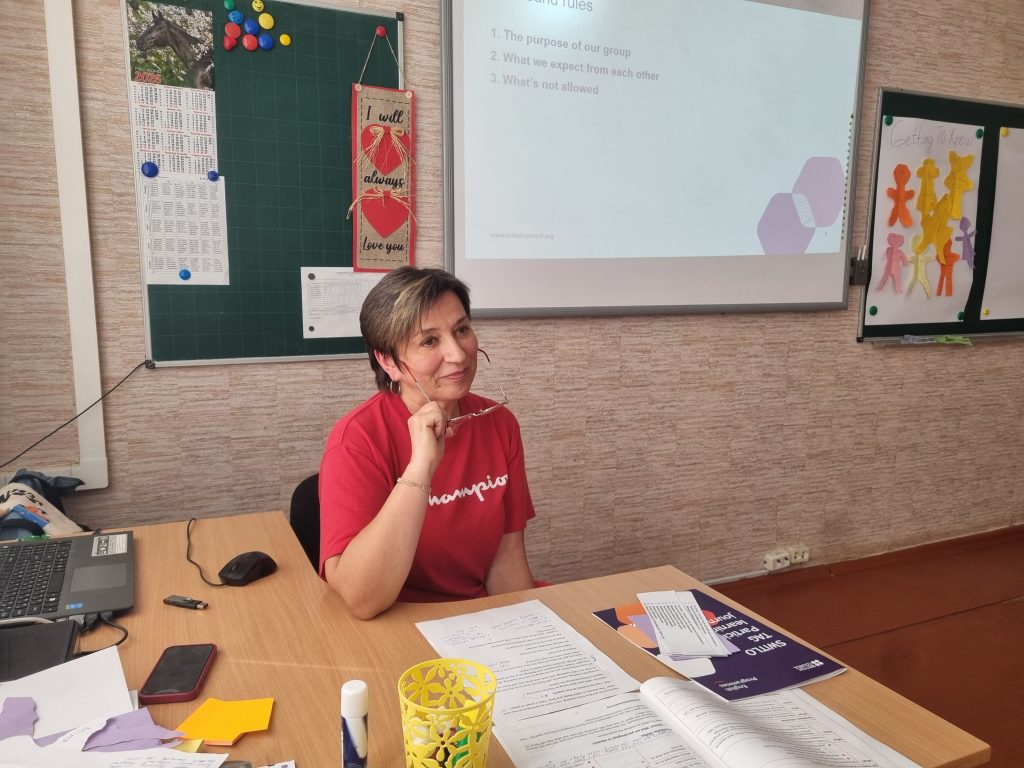Тетяна Сімончук, консультант Центру, ознайомила колег з «Програмою школи професійної майстерності вчителів англійської мови нового формату TAG (Teacher Activity Group)», яка була розроблена Центром відповідно до проєкту Британської ради та Міністерства освіти і науки України SWITLO.