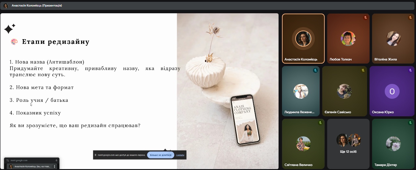 Спікерка надала цікаві теми та ідеї для проведення Новорічних свят у школі «Без шаблонів і формалізму», ознайомила із цифровими інструментами для створення коротких відео.