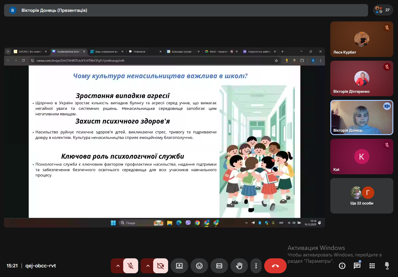 16.12.2025 відбулася педагогічна майстерка для працівників психологічної служби закладів освіти «Роль працівника психологічної служби у формуванні культури ненасильництва в освітньому середовищі».