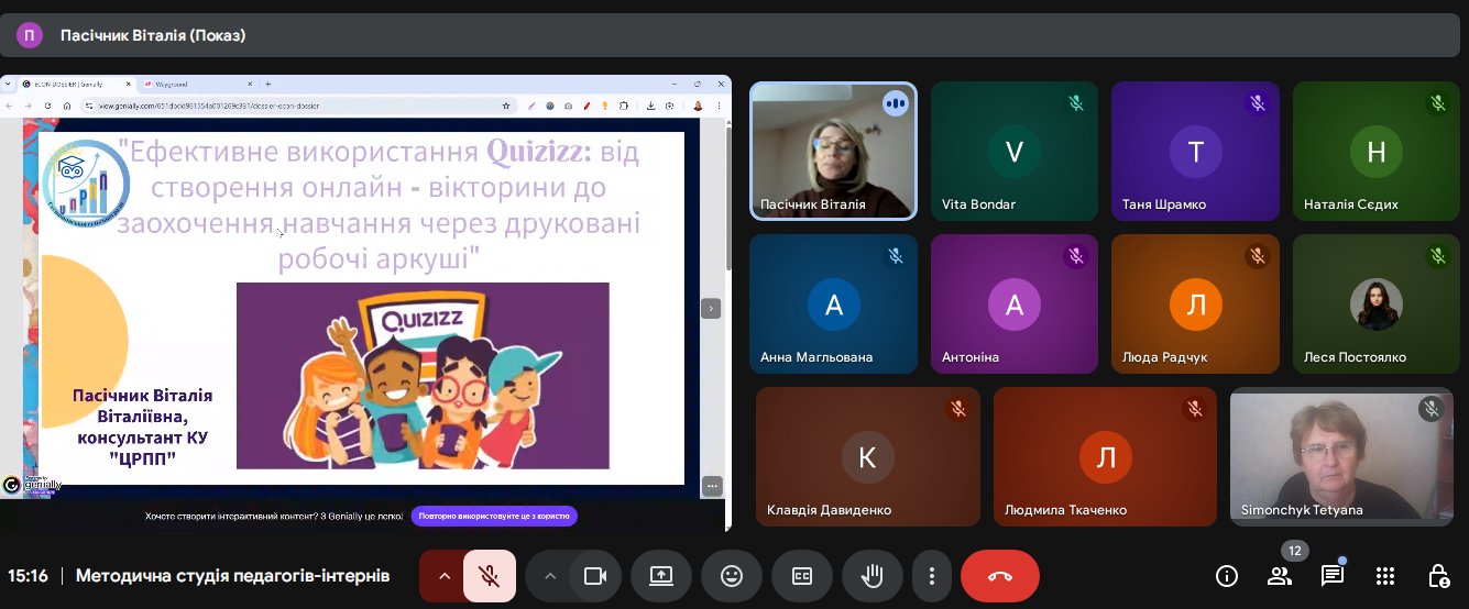 Віталія Пасічник, консультант Центру розповіла про сучасний сервіс Quizizz, який допоможе спланувати та урізноманітнити уроки й заняття та продемонструвала його роботу й можливості.