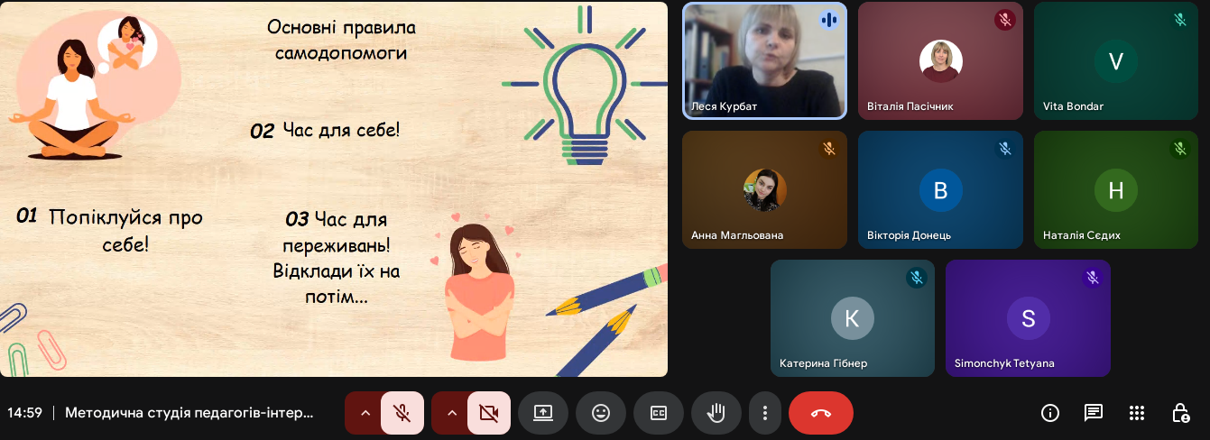 Вікторія Донець, психолог центру, ознайомила педагогів із техніками саморегуляції та відновлення життєвого ресурсу, вказала на важливість залучення батьків до освітнього процесу на засадах партнерства.