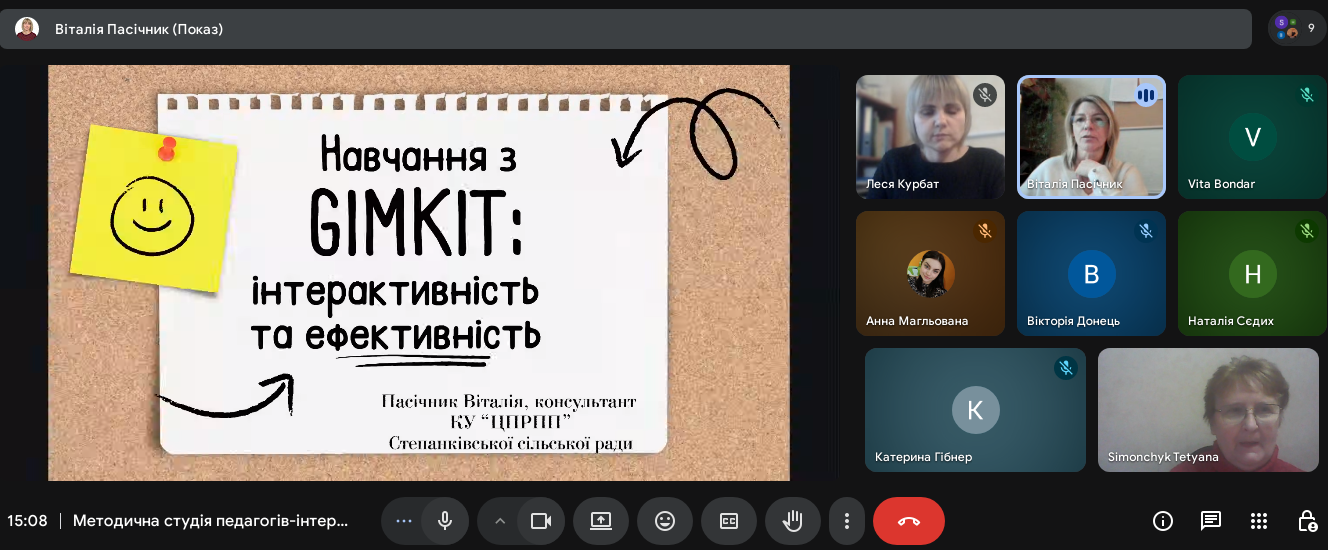 Віталія Пасічник, консультант Центру, ознайомила учасників зустрічі із безкоштовним сервісом GIMKIT, який дозволяє педагогам створювати інтерактивні завдання та вікторини. Педагоги можуть використовувати готові ігрові шаблони або створювати власні за допомогою ШІ, адаптовані до різних вікових груп.