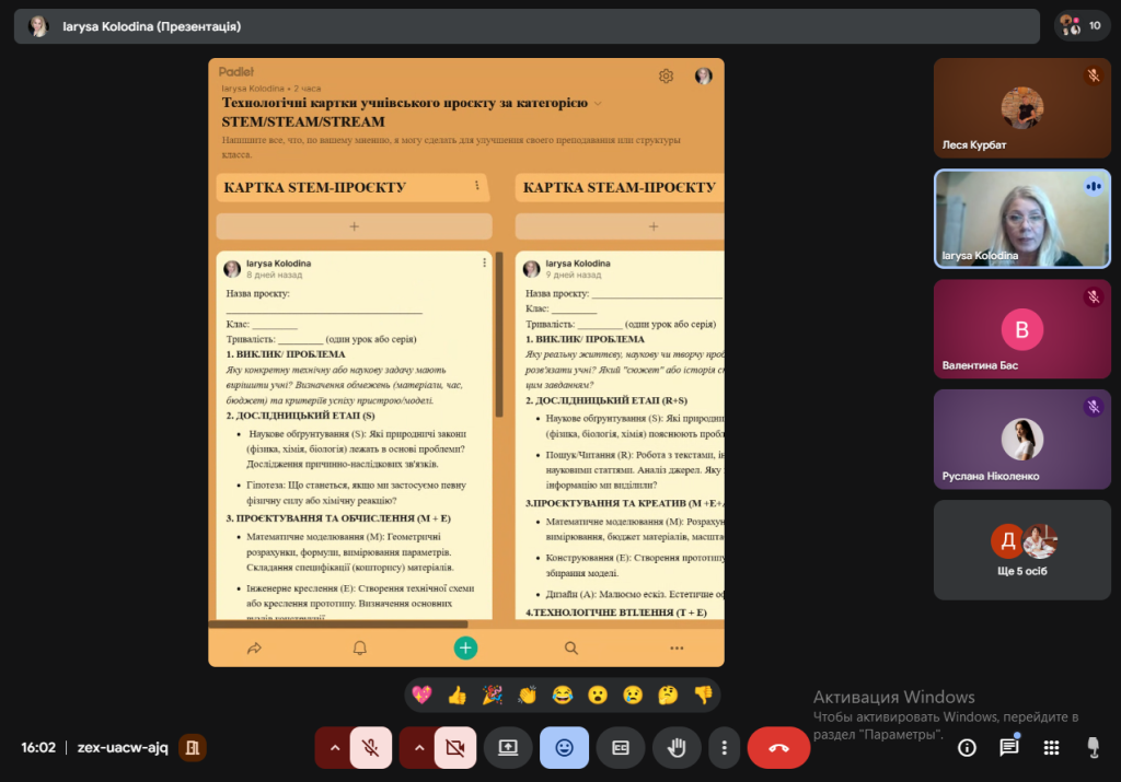 25.02.2026 відбулася чергова зустріч-заняття «Основні підходи STEM-навчання: STEM, STEAM, STREAM» учасників курсу «STEM-студія вчителя НУШ».