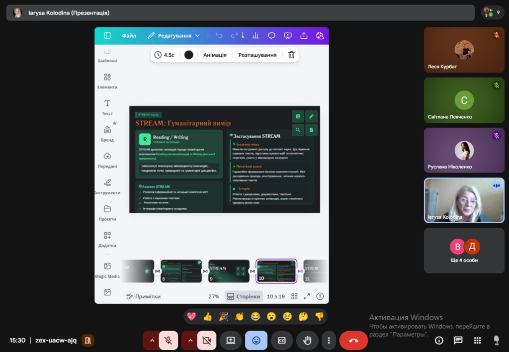 Під час зустрічі учасники детально розглянули еволюцію підходів STEM, STEAM, STREAM, STREM; на практиці розібрали приклади проєктів означених напрямків.